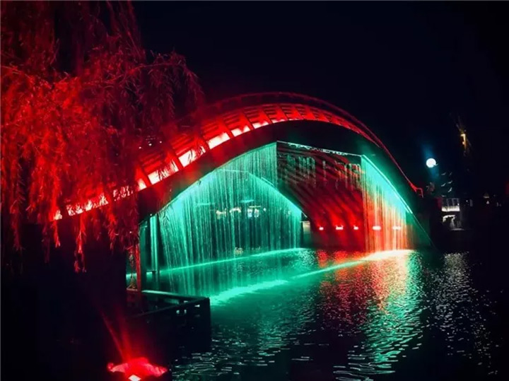 夜晚的第二個精彩,是沿著汴河的燈光,慢慢地,慢慢地靠近虹橋。看著虹橋越來越近越來越近,心情好像染上了彩虹的顏色,變得有些欣喜雀躍。虹橋,如果你有生命,一定是位身姿曼妙令人心動的姑娘。