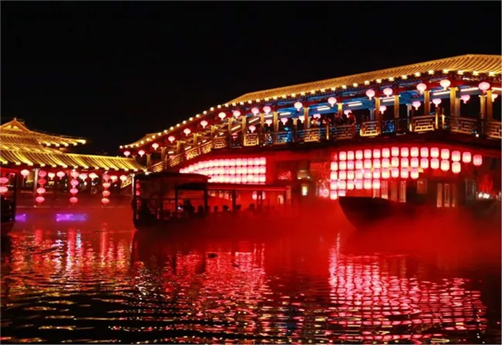 夜晚的第四個精彩,是從雙亭橋碼頭出發,乘船夜賞新汴梁八景的體驗,從“大宋·汴河燈影”到“新汴梁八景”,提升之後,更有韻味,更加浪漫。