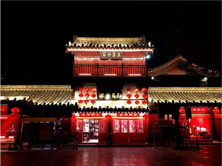 夜晚的第六個精彩,是王小姐的繡樓—王員外家,招親時間已經過去,夜晚的繡樓像它的主人王小姐一樣動人。門頭上的百年好合和金玉良緣,好似在祝福著全天下的有情人終成眷屬。