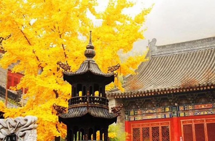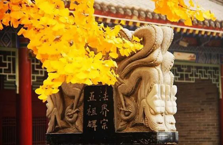 至相寺內有銀杏樹三棵,一棵高大的在寺院最後面的“法堂”之側,另兩棵位於大雄寶殿前方臺階下、法界宗五祖碑旁,每到深秋時節,寺內銀杏葉金黃紛飛,仿若一片一片金葉空中旋落。