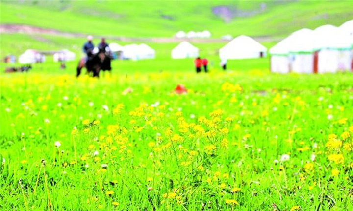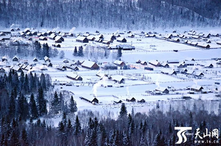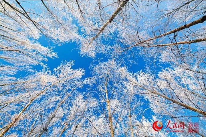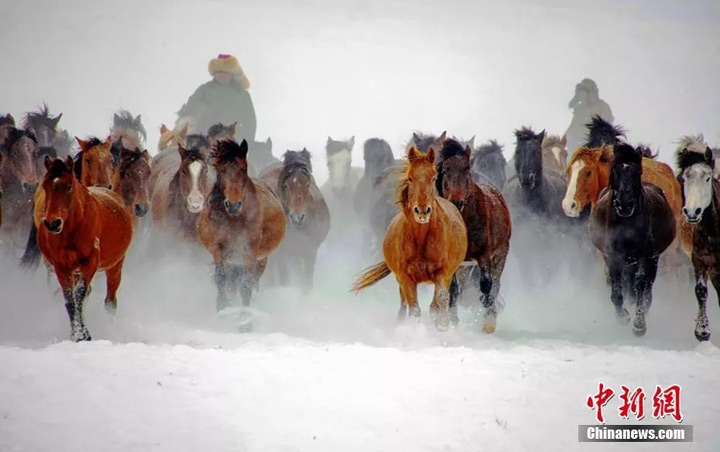 昭蘇大草原上白雪皚皚、銀裝素裹。