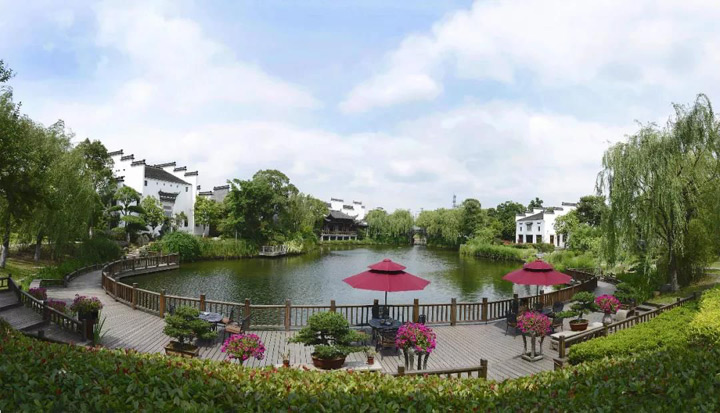 聞道園以古徽派建築復建為主要特色,園內建築再現了徽州古樸雅致的人文情懷,這裡有明萬曆年間的貞節牌坊、傳自諸葛亮54代後裔的花廳、康熙年間的古戲臺、咸豐年間的武狀元樓、民國初年的楠木廳等江南韻味十足的建築群。