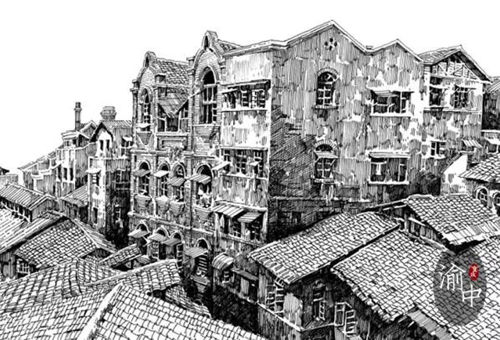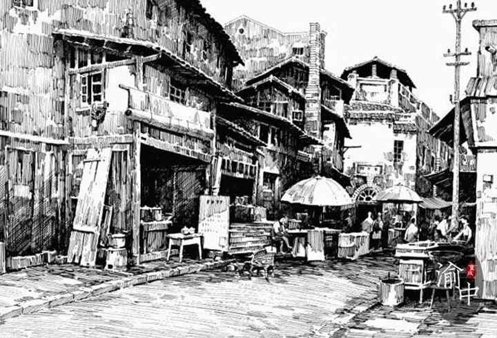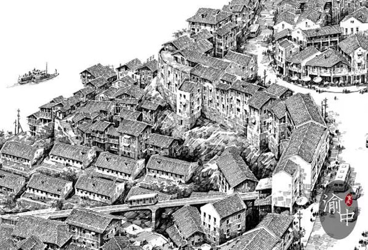 時光流轉,許多往事都已如煙。而今,畫家歐陽樺,用手中的一支鋼筆,穿破歷史的迷霧,尋回了百年前獨屬於渝中半島的熱鬧與繁華。