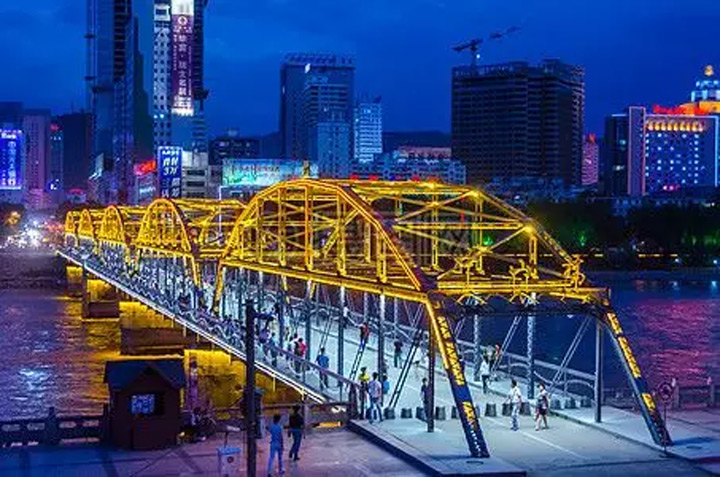 現在的中山橋是一座步行橋,夜幕降臨站在橋上,能夠看到五彩中山橋以及黃河兩岸美輪美奐的燈光變化。中山橋的燈光設計還有小小的心機,每天都會以不同的顏色向市民展示她的風采。隨著時間的流逝,城市發展日新月異,黃河之上已經新建了許多座橋用以連通黃河兩岸,這座古老的黃河鐵橋已不再是溝通黃河南北兩岸的唯一通道了。現在,黃河蘭州段主城區的橋樑就有十幾座,蘭州被譽為橋樑之都。儘管如此,這座橋依舊擁有著無可比擬的獨特優勢,因為她就像一部史詩,鐫刻著蘭州古往今來歷史的變遷,展示了蘭州人民燦爛藝術的畫卷。正是這些橫跨在母親河上的橋樑,既連著城市的南北,也通向我們的未來。