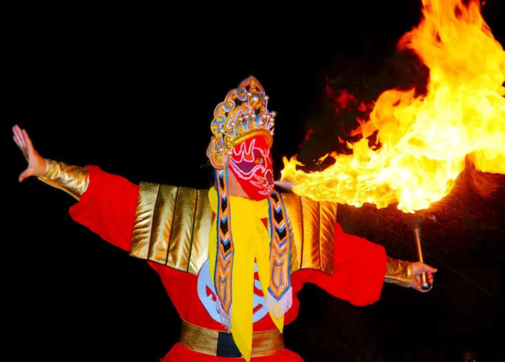 ▲ 自貢川劇團表演川劇絕活-變臉吐火 圖源/四川省情網 攝影/曾林