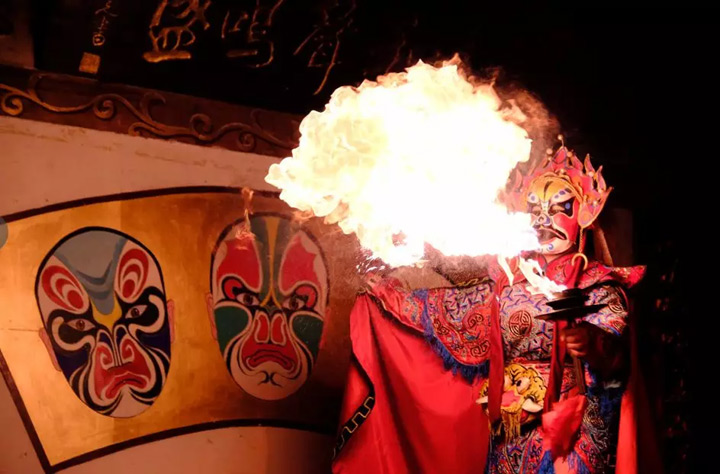 吐火:表演者口中噴出松香粉或煤油,到導火索上,用火焰來表達角色情緒或表演情節的戲劇性變化。