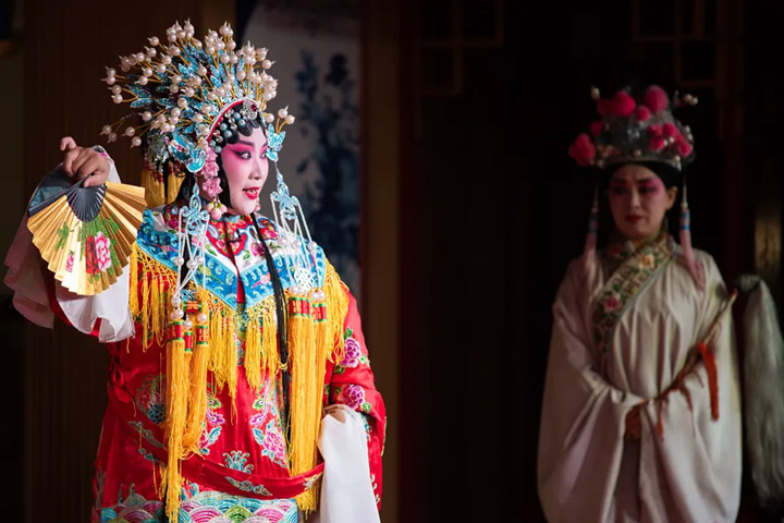 甩水袖:演員揮舞長袖,創造優美的舞蹈或視覺效果。