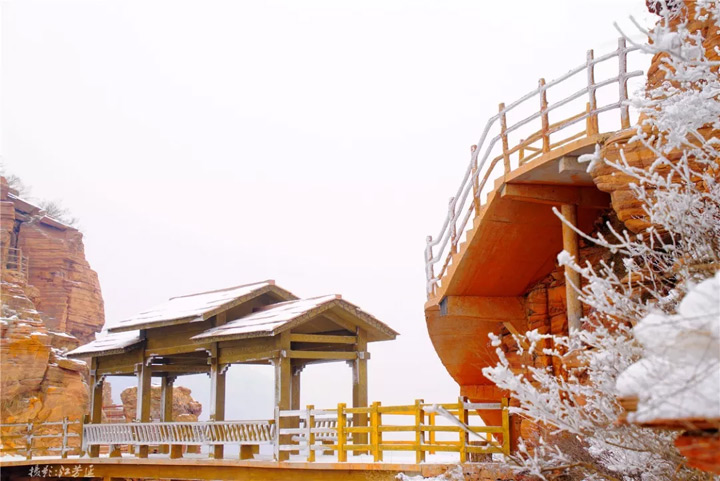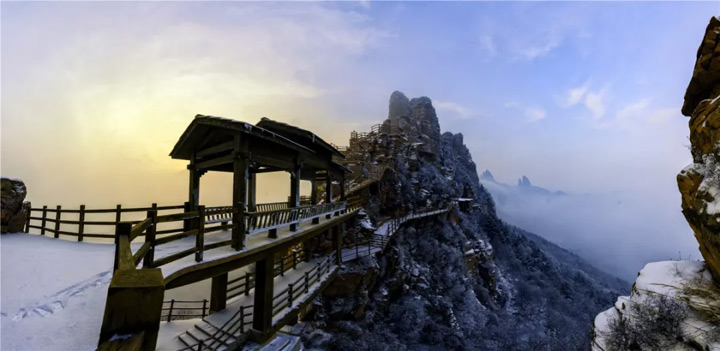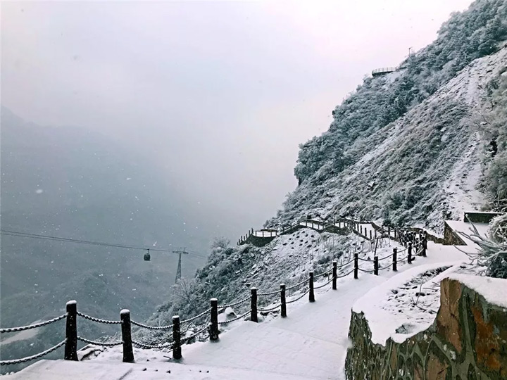 雲間棧道在白雪的裝扮下