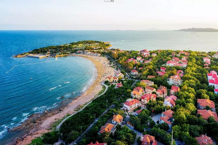 八大關紅瓦白牆的別墅群...
