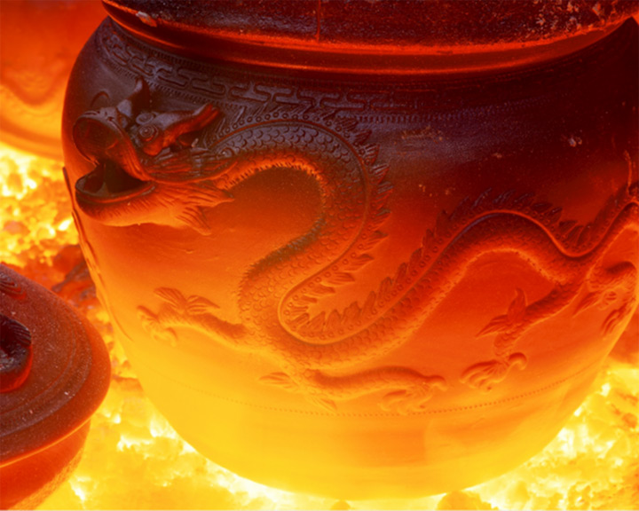 滎經砂器是以四川滎經縣當地盛產的一種黏土和煤灰,經過1000℃以上的高溫燒製而成。滎經砂器質地古樸,抗腐蝕、耐酸鹼,不起化學反應,儲存食物不易變質。