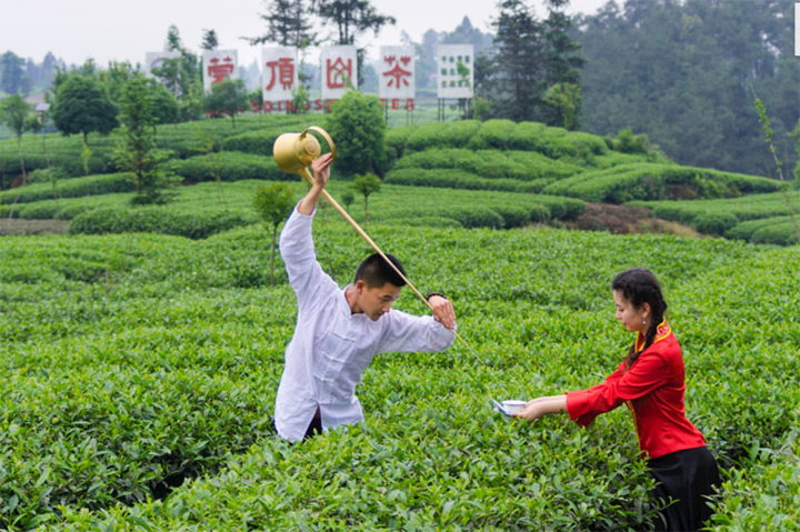 蒙頂茶葉細而長,淺綠油潤,泡出的茶湯黃而微碧、清澈明亮、香磬高爽。其製作過程要求制工精細,從採摘到製作成成品,要經過十三重工序。