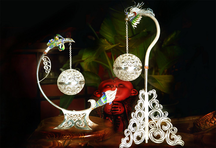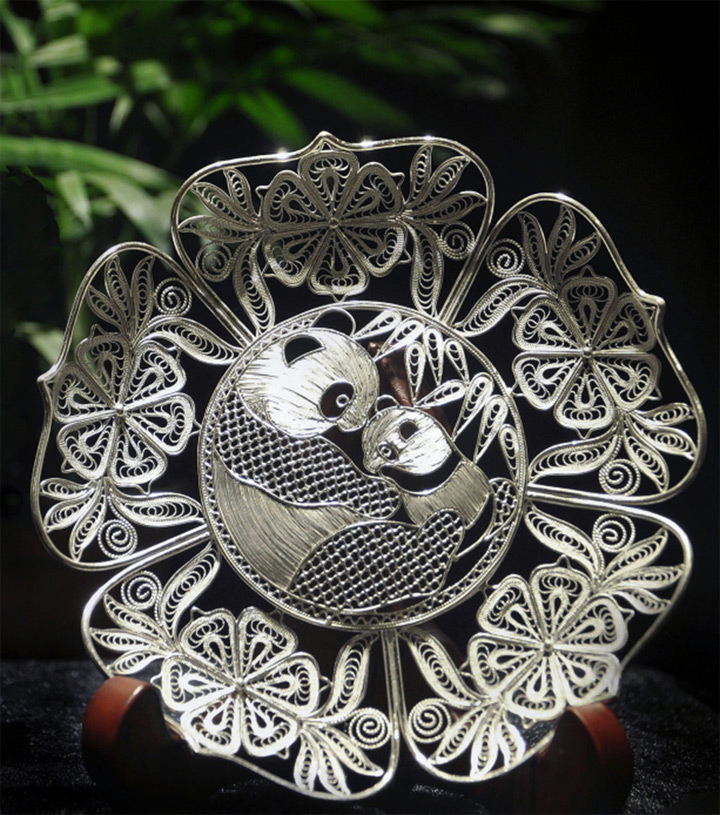 銀絲通常由細銀條拉制成,細而勻稱。銀花絲技藝最大的特點,是採用“平填”技術,無胎成形。