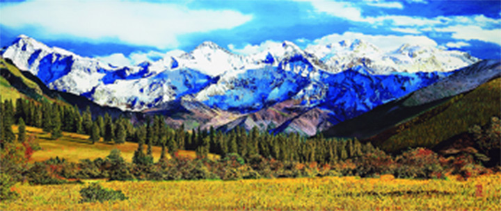 蜀繡作品《秋色高原》由非遺傳承人孟德芝率領33名繡女歷時109天繡製完成。
