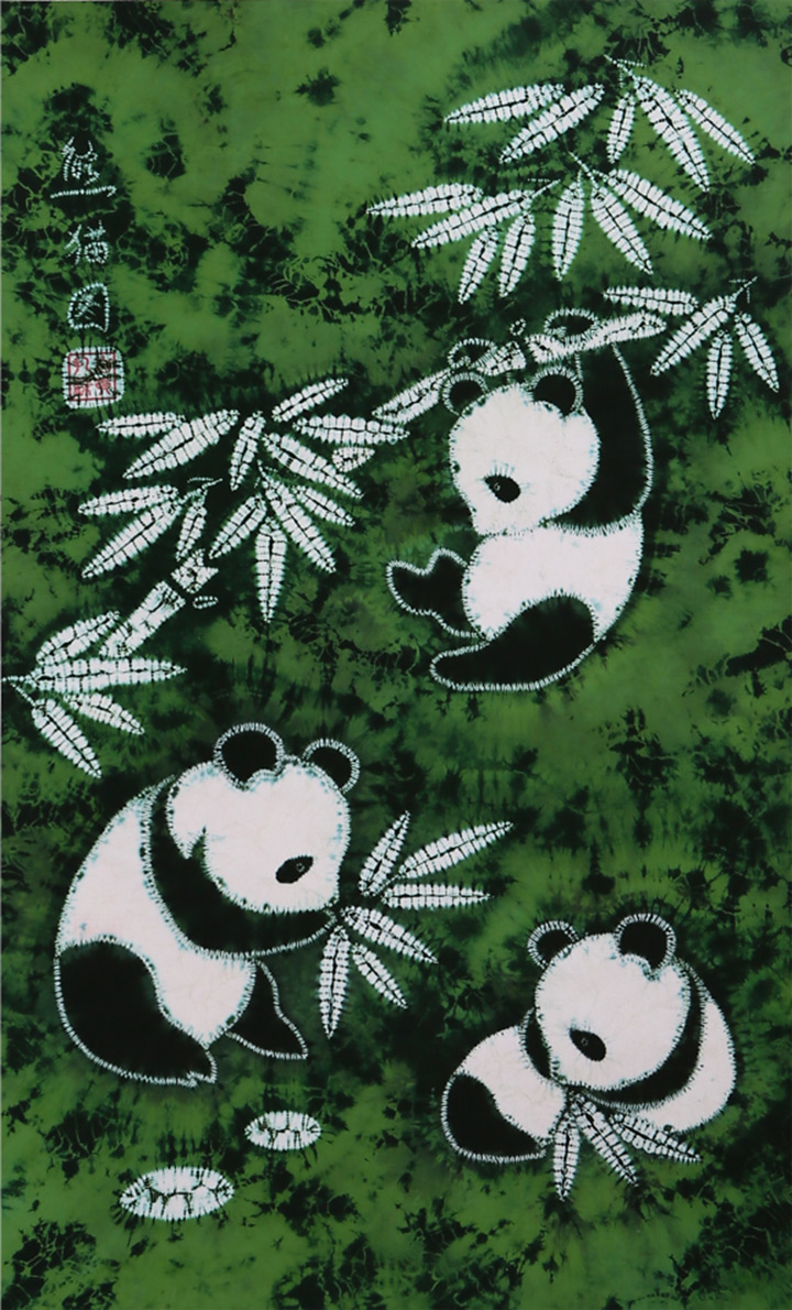 自貢紮染以針代筆、以色代墨,使幾何圖案及包括人物、動物、花鳥、書法等在內的寫意圖案若隱若現地呈顯在紮染品上,手法出神入化。