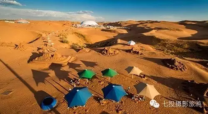 來到內蒙古鄂爾多斯響沙灣,你才會突然發現,原來沙漠不僅可以會唱歌,而且還可以這麽美。 響沙灣是一個彎形沙坡,背依庫布其沙漠,月牙形狀的沙丘高約百公尺,寬400多公尺,沙坡斜度爲45度。天氣晴朗乾燥的時候,人從沙丘的頂部往下滑,可以聽得到沙子發出的如同交響樂多重奏一般激昂澎湃的聲音,整個沙丘仿佛就是一個巨大的回音壁,響沙灣因此而得名。在大漠看日出、賞晚霞、玩沙漠衝浪,與沙漠親密接觸,不失爲一種絕妙的體驗。