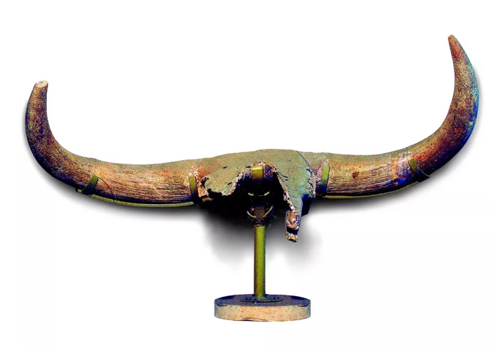 ▲ 水洞溝遺址,舊石器時代出土的原始牛頭化石。攝影/董宏征