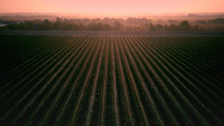 ▲ 清晨,賀蘭山下的軒尼詩酒莊葡萄園。攝影/董宏征
