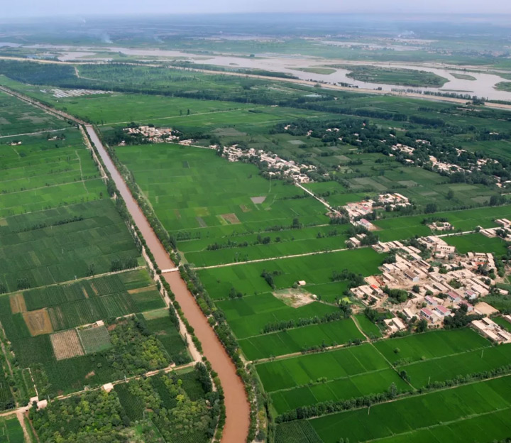 ▲ 銀川平原溝渠相連,阡陌縱橫,稻田綠茵。攝影/董宏征