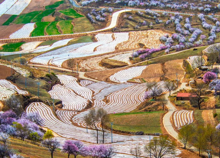 ▲ 彭陽花海。彭陽1983年建縣,是個極度缺水的貧困縣,人均水資源佔有量僅相當於全國的六分之一。如今彭陽已做到了自來水入戶率99.8%,森林覆蓋率從建縣時的3%提高到27.5%,再加上連片梯田帶來的綠意,黃土上的滿目焦渴已成歷史。攝影/竇玉琴
