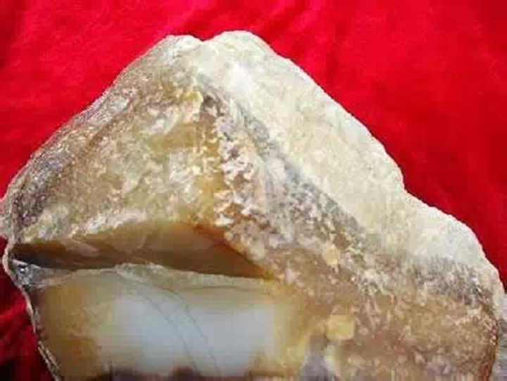 瑪瑙石,出自新疆哈密火山岩荒漠地區的淖毛湖戈壁和沙爾湖戈壁一帶。瑪瑙屬火山岩產物,由隱晶質纖維狀玉髓組成,摩氏硬度約為7,主要生成於中基性熔岩的空洞及裂隙中。新疆瑪瑙石屬戈壁坡積型風成石,其體量及石膚的天成性,均適宜作奇石觀賞。