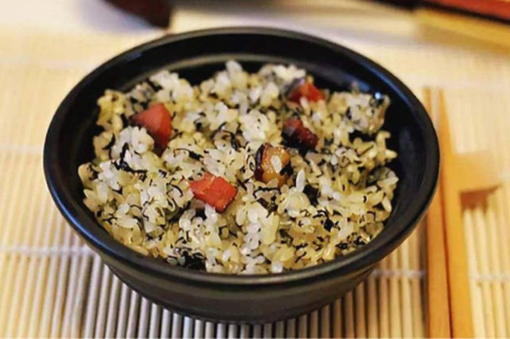“社飯”是貴州省銅仁市玉屏侗族自治縣侗家人每到春天都要製作的一道地方美食,家家戶戶樂此不疲。當地村民將採摘的青蒿、野蔥等植物,與臘肉、糯米、乾豆腐、花生等混在一起,然後用鐵鍋燜製成“社飯”,燜熟後的“社飯”色香味美、鬆軟可口、老少皆宜。