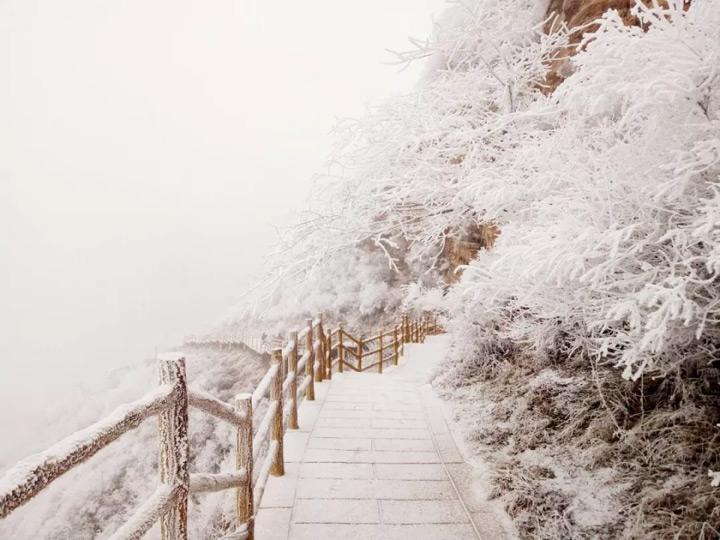 雲間棧道在白雪的裝扮下
