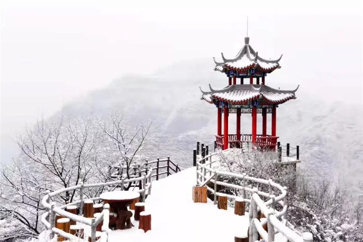 純白的雪花和古樸的東太行