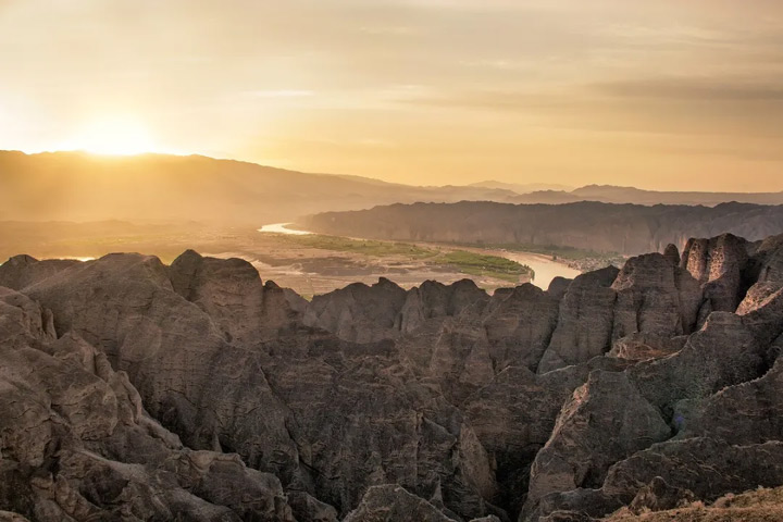用一個清晨的時間迎接日出,當夕陽罩滿黃河和老龍灣村,原生態石林人家放空身體;當清晨的第一縷陽光灑在臉上,一切宛如初生,滌蕩心靈。玩攝影的朋友一定要去黃河石林國家地質公園觀景台,就在飲馬溝盡頭的山頂上,上山約需30分鐘,下山15分鐘則可。山頂上居高臨下,可以鳥瞰方圓幾十裡,石林全在腳下。