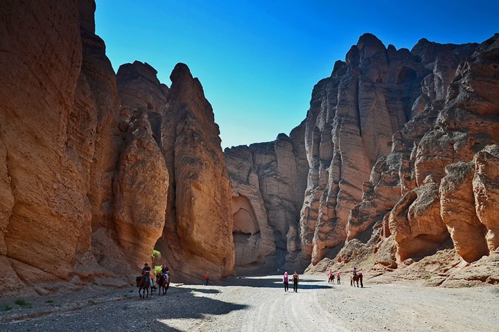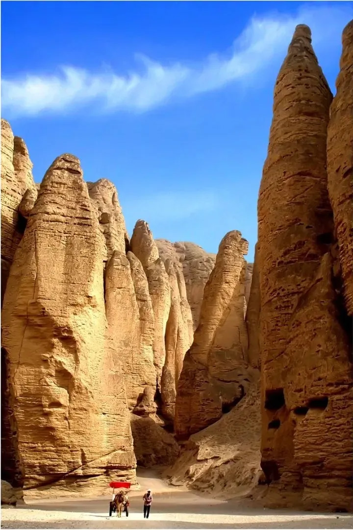 飲馬溝大峽谷全長4.5公里是黃河石林的核心所在,溝內峽谷蜿蜒、峰林聳立、絕壁淩空、氣勢磅礴,像一道古樸滄桑的化石長廊。眾多影視作品,如《神話》、《決戰刹馬鎮》、《花木蘭》等都選擇這裡作為外景拍攝地,古黃河沖刷過的古石林群帶你穿越時空,遐思千萬年的歲月…