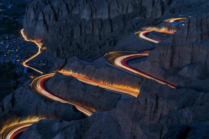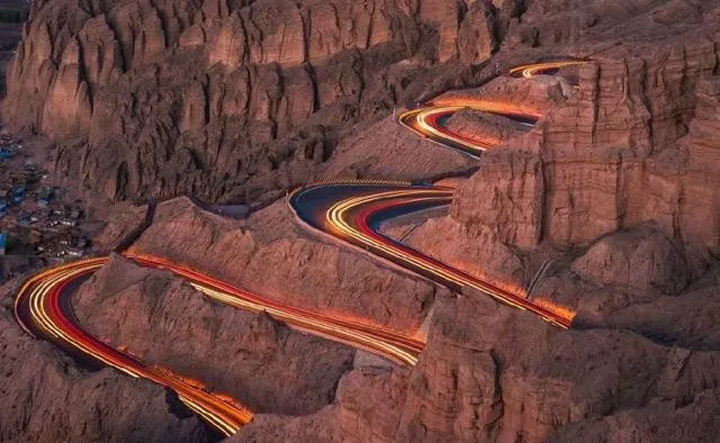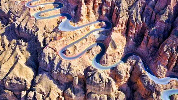 到景泰黃河石林國家地質公園感受驚險的二十二道彎。據說以前這裡的人出山困難,因為實在是太難翻越了。即使到了人類能上天入地的今天,從山口上下去龍灣村裡,也不得不左拐右彎,小心翼翼地緩緩而走下一段山路,這就是村民戲稱的“二十二道彎”。