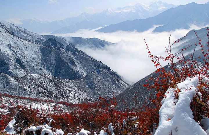 青海的冬季雖寒冷而又漫長,而雪,則必不可少,畢竟對於冬天,這是身份的象徵。“北國風光,千里冰封,萬里雪飄”,描寫的雪景也莫過於此,連綿的山嶺像銀白色的巨蟒,雪中的樹林依舊挺拔,好似北國的戰士遙望遠方,守候自己的家園。