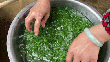 1.把艾葉爛葉摘掉,硬的艾梗去掉,嫩葉全部摘好,沖洗乾淨。