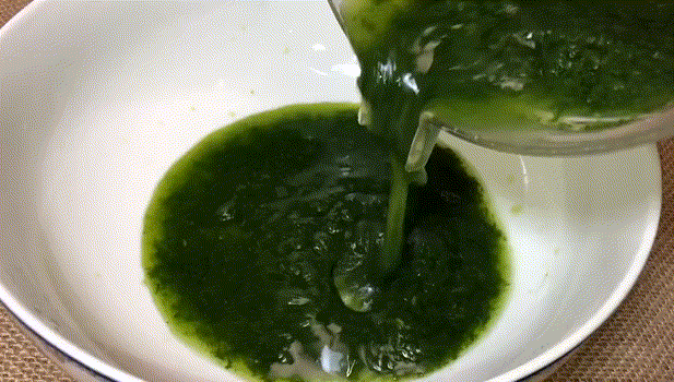 3.用攪拌機直接把艾葉攪成泥,攪拌好後倒入碗中。