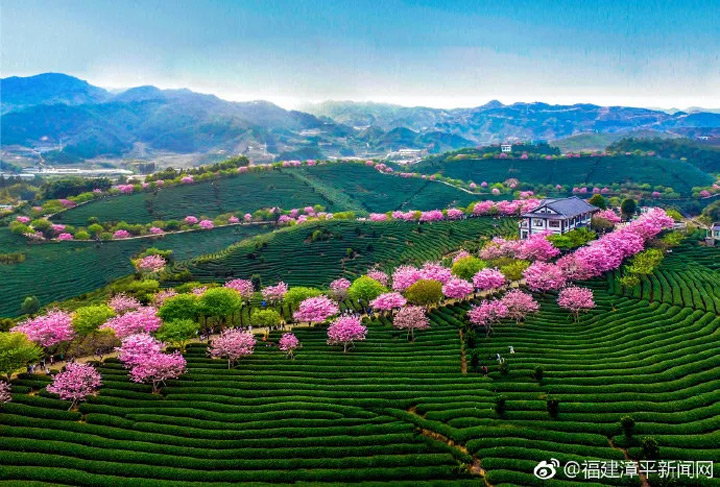 福建漳平永福鎮是全國有名的花鄉。在永福5萬多畝的茶園裡,胸徑8公分以上的櫻花就有10萬株、品種多達42個,堪稱“福建各地櫻花園之最”。