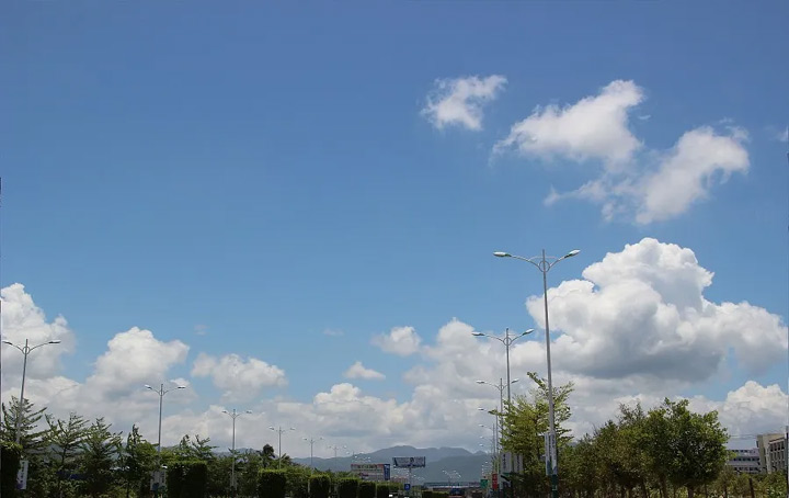 你也會看到成片成片的雲朵掛在藍藍的幕布上