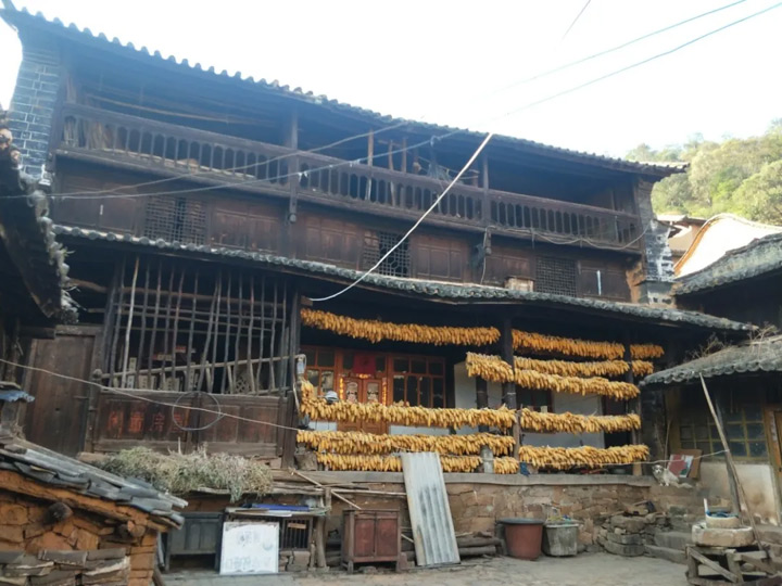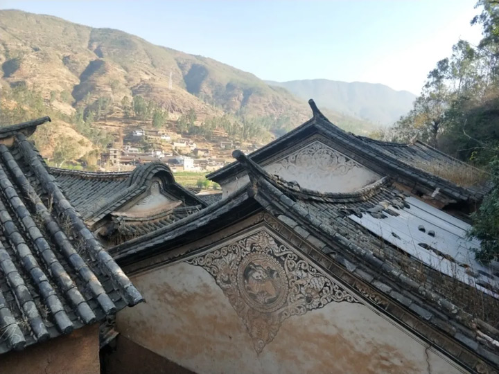 初九日,到了美泗村峽口。一條古騾馬鹽道從村中間走過,村裡還有一口清甜的古井。井邊還有一個過街樓,樓下古石板路按秦五尺道而建。《徐霞客遊記》裡記為:“二里半,泗峽口”。這是一個古老的村寨,謝家大院(現為起家居住)有一幅古對聯:“簏水淘金藍茵種玉,花對易紫左閣流泉”。經過幾百年的風雨淋曬,門窗陳舊,磚石卻還結實,院子裡青磚鋪地,飛簷依存,土牆很厚,“烏衣世第”門頭依然,雕門畫梁,刻窗飛簷,古風猶在。然後走過大坡頭到達廟山營,過了金家地、廠房、新壩屯和大姚縣東門,在縣城南門水井處的一家旅店住下。旅店後的寶筏山上有一座白塔,是雲南絕無僅有的一座唐代古塔,在雲南古塔史上佔有重要的地位。