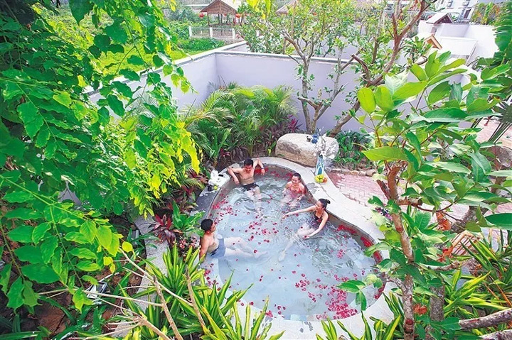 ↑遊客在三亞泡溫泉。海南日報記者 張傑 攝