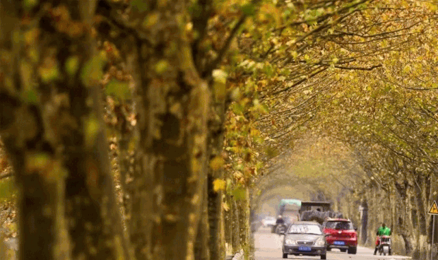 當溫玉路段的梧桐大道由金黃變為碧綠