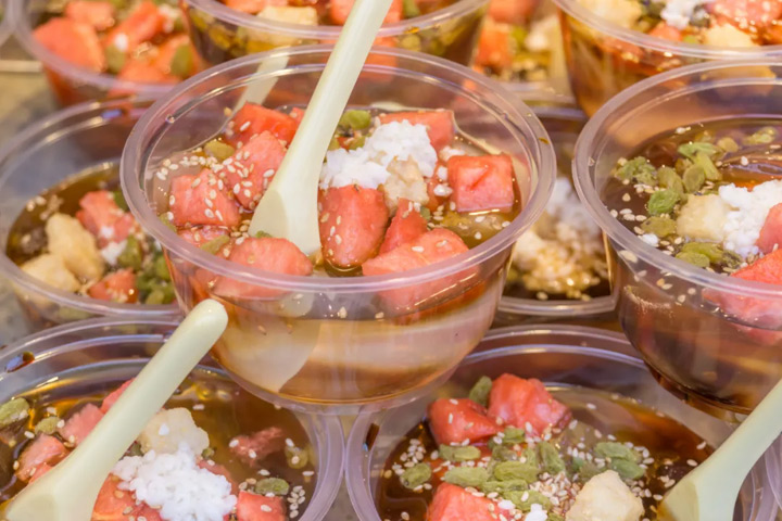 當冰粉兒裡滿料添加西瓜醪糟花生碎