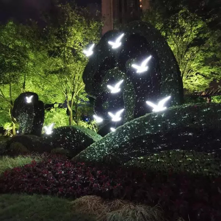 沿街主要對行道樹進行照明,同時針對一些路口綠化景觀,進行照明強調。街頭綠化節點空間進行重點設計,增加一些趣味性燈光,形成沿街的形象展示。