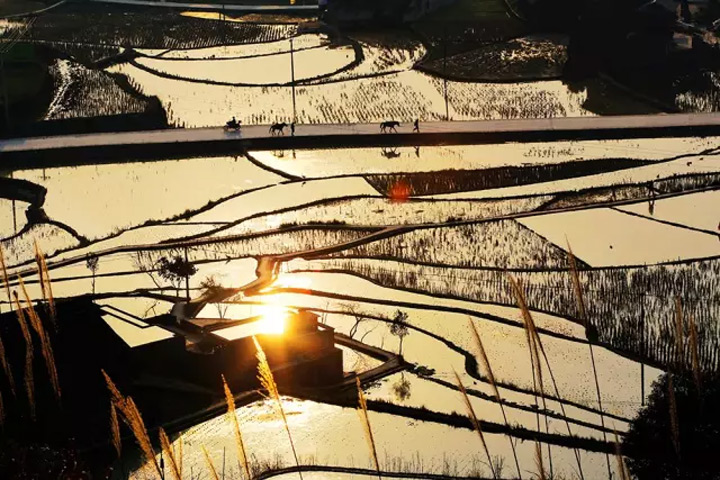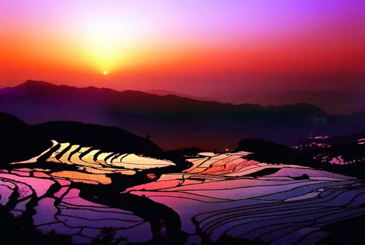 梯田的暮色分外美麗