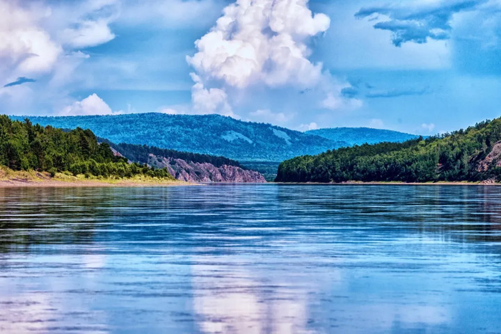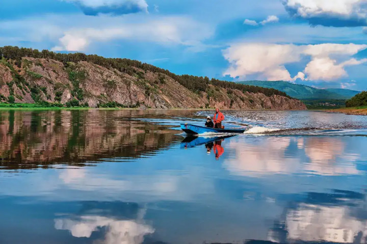 北極島之地窨子,距阿木爾二百里許,出小鎮三十餘里,入S218省道,至江畔。棹蘭舟入江,遂見山色如娥,花光如頰,江風如酒,波紋如綾。一舉頭,不覺目酣神醉。驀然回首,蔥菁刺眼,遠眺處,若三峽奇景、似太白佳句,豁然開朗。