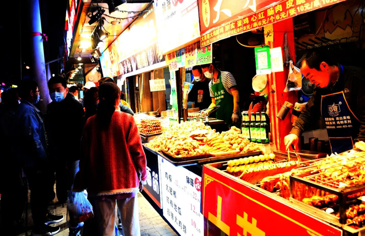 夜晚帶給長春的最大魅力,就在桂林路。天色如白晝,幽寒的夜氣卻漸漸散佈。聽餐館裡觥籌交錯間的閒談聲,食物煎炸的滋滋聲,孤獨的人和不孤獨的人在這裡相遇,卸下平日的偽裝,彌漫在空氣中的柴米油鹽的味道陪伴每個人度過漫漫長夜。仿佛裹上糖漿的鍋包肉,剛入齒間就感受到一種溫暖的甜;鐵板魷魚既香辣又開胃,味道直沖鼻尖;炸雞柳色澤深黃香氣四溢,記憶裡童年的味道撲面而來;烤豬蹄富有彈性又彈牙,不經意間吃得扎扎實實...
