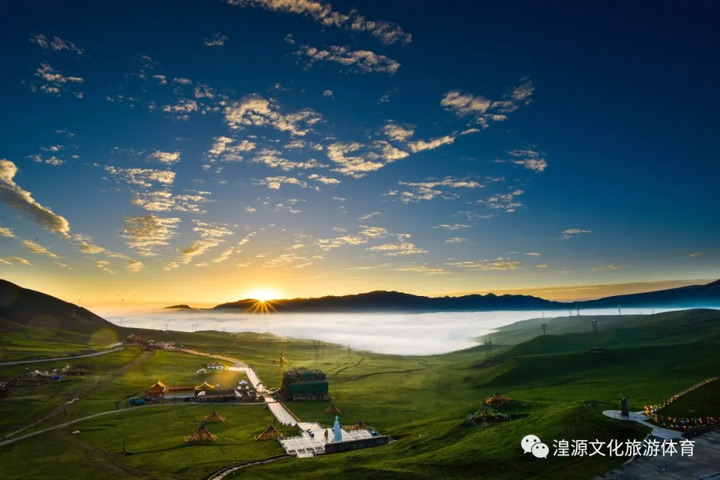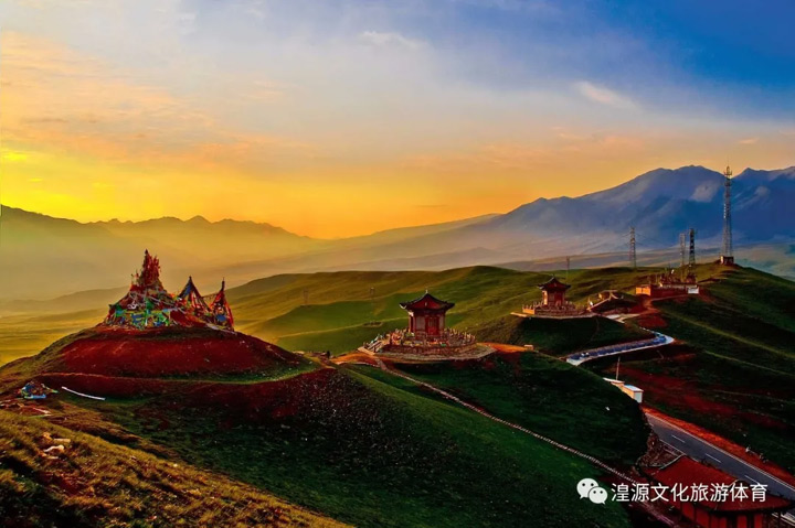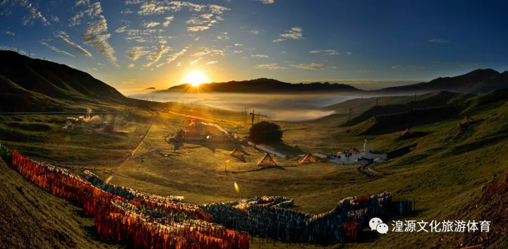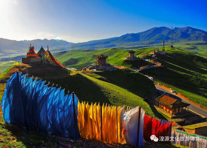 追隨清風遊赤嶺,清晨的日月山被金色陽光的溫暖喚醒,湛藍的天空下是一望無際的綿延山脈,經幡隨微分揚起為前來日月山的八方朋友送去安康祝福。