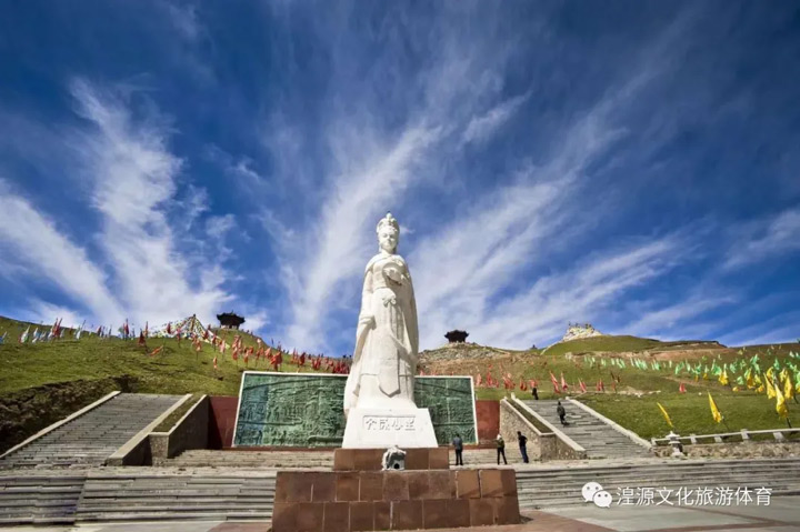 “悵然唐王寶鏡殘,輕裘把酒,故里幾時還?蒼穹西去車塵遠,千里東望長安怨。”這裡是文成公主進藏時遠眺長安的地方,似乎風中還依稀傳來當時迎親的牛角號,那聲音在天空中回蕩,久久不息。公主早已遠去,但是這些傳說和公主眼淚彙聚的倒淌河都留在了這裡。