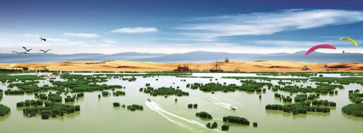 在中國大陸有水的地方很多,但湖光山色中少了些沙的粗獷;有沙的地方不少,但瀚海起伏中少了些水的靈性。只有在沙湖,您才能看到沙與水的珠聯璧合。