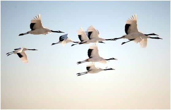 夏天是這裡最好的觀鶴季,6月到9月是紮龍濕地內丹頂鶴比較多的時候,每到鶴群放飛表演的時候,天上一下飛過20、30只丹頂鶴,它們像是劃過天空的仙子,與地面上靜止的濕地,勾勒出了扎龍的寧靜時光。
