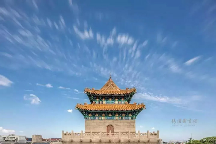 在滿是高樓大廈的魔都,楊浦區圖書館實屬驚豔。明黃色的琉璃瓦,重簷歇山頂,朱紅色古風大門,被很多人稱作“上海小故宮”。