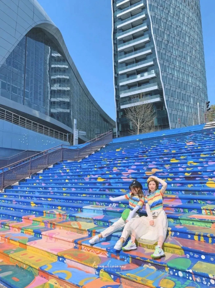 超小眾的拍美照打卡點,彩虹色的樓梯,童趣十足。樓梯上的塗鴉是海底世界的主題,據說都是小朋友們畫上的喲。