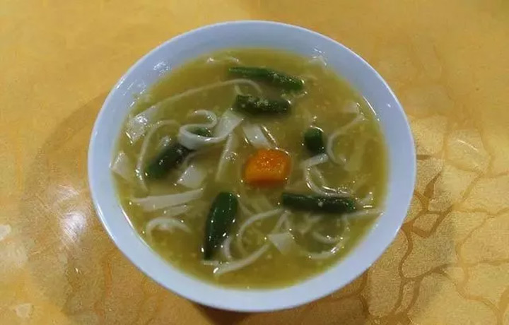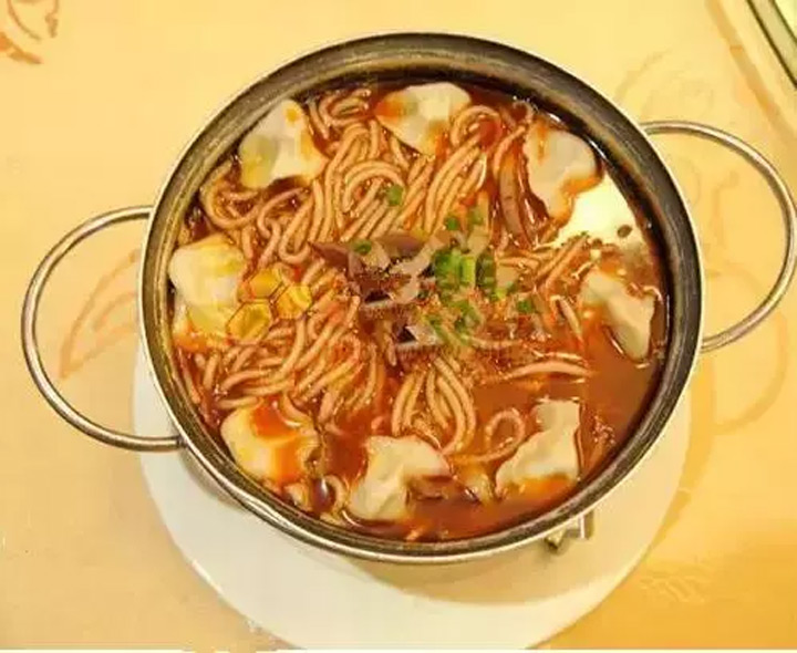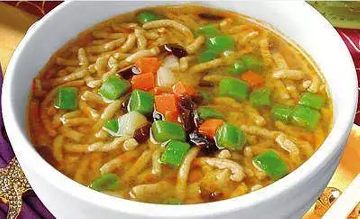 興縣冒湯的特點在於鹹麻酸辣,鮮香可口,這可是遠近聞名的風味小吃。據說起源於清朝時期。其主要的原料為:粉絲、小餛飩、青紅絲、海帶絲、蔥絲、鮮蕪菜、香油等。製作冒湯先把水燒開,把事先準備好的細粉絲、小餛飩按吃食人數,適量下鍋,一般一碗冒湯下餃十個。煮熟後措在小碗內,舀點湯,撒上青紅絲、海帶絲、蔥絲、鮮蕪菜,灌以胡椒、花椒、生薑、食鹽、醋,辣椒等調料湯,即可食。食時配以拉絲烙餅更是可口。